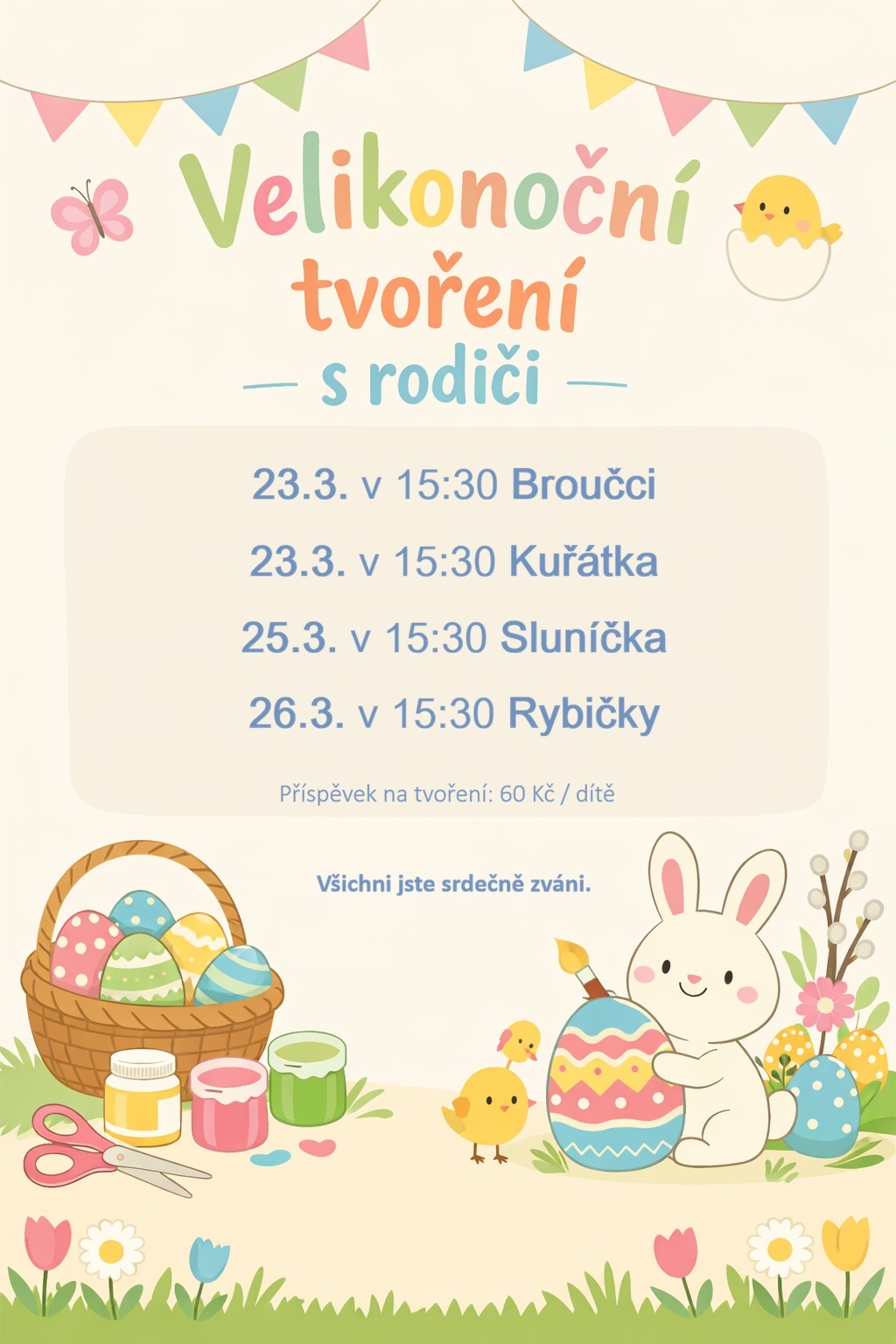 Velikonoční tvoření s rodiči Marie Billová 23. března 2026 23. března 2026 Žádné komentáře u textu s názvem Velikonoční tvoření s rodiči